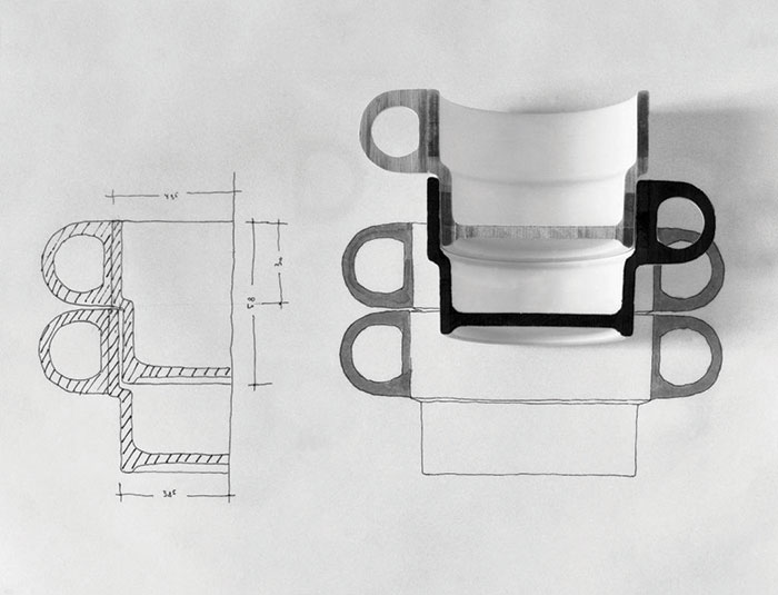 हान्स ऱोरीच ह्या विद्यार्थ्याने १९५९ मध्ये एकमेकांवर रचून ठेवता येतील असे मेजावर्ती चहा कपबश्या संच डिझाईन केला. पदविका प्रकल्प म्हणून हे काम होते. टीसी १०० असे नामकरण असेलेले हे डिझाईन विद्यार्थ्यांच्या हॉस्टेल मध्ये प्रथम वापरले आणि नंतर संपूर्ण युरोप मध्ये त्यास मागणी आली. उल्म स्कुलचे हे अत्यंत लक्षणीय डिझाईन समजले जाते.
