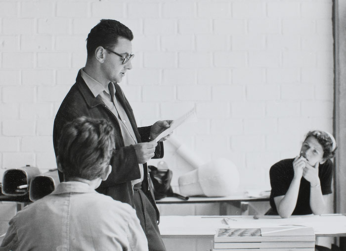 नाडकर्णी: १९६२ पर्यंत एचएफजी दोन टप्प्यातून गेली. १९५२च्या स्थापनेनंतर ते मॅक्स बिलनी १९५७ला सोडेस्तोचा काळ व त्यानंतर १९५८ ते १९६२ मधील अशांतता ज्यातून इंटरडिपार्टमेंटल शिक्षक शक्ती वाढणे. येथेच डिझाईन फॅकटीला भीतीचे हादरे बसू लागले.