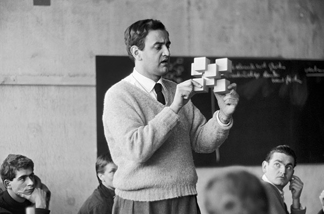 त्यांनी हि वास्तू डिझीईन करण्याची जबाबदारी घेतली. १९५५ मध्ये मूळ इमारतीचा सांगाडा तयार करून विटांवर निव्वळ पांढरा रंग लेपून उभारली. मोठया खिडक्या, भरपूर प्रकाश, भरपूर जागा हि वैशिष्ट्ये होती. यूरोपातील प्रस्थापित युनिव्हर्सिटीच्या इमारतीसारखे ऐतिहासिक डिझाईन नसलेली अशी ही इमारत. त्यास नक्षीकाम अथवा भव्यदिव्य असे काहीच नव्हते. सरळ सोपी कोणत्याही सजावटीशिवाय असलेली ही इमारत लोकांनी आणि स्थापत्यशास्त्रींनीं (आर्किटेक्चर) नाकारली.