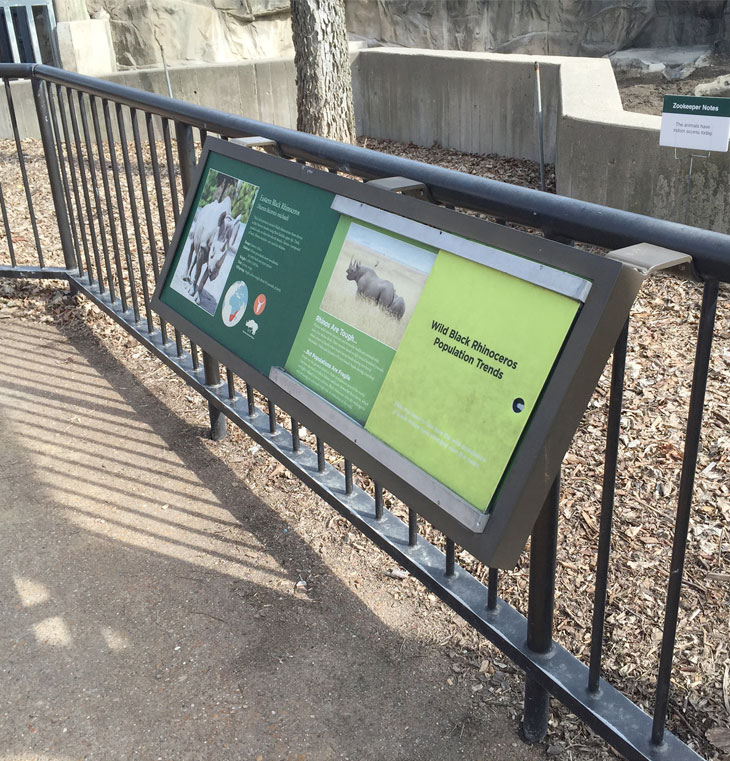 The information panels at the Chicago Zoo are an example of how tilting the display helps reading when the display cannot be installed at eye level.