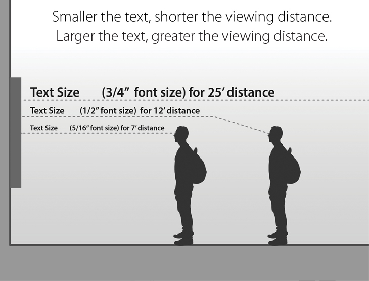 As you can see, there is a direct correlation between the size of the text and the viewing distance. That means as the size of the text decreases the viewing distance must be shorter, and as the size of the text increases the viewing distance can be greater.