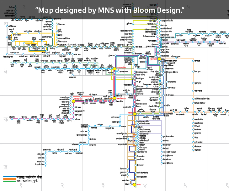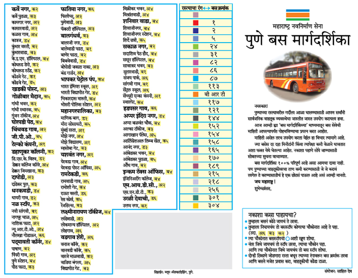 Second was the Pune bus route map designed by the (MNS) Maharashtra Navnirman Sena with Bloon Design Pune.