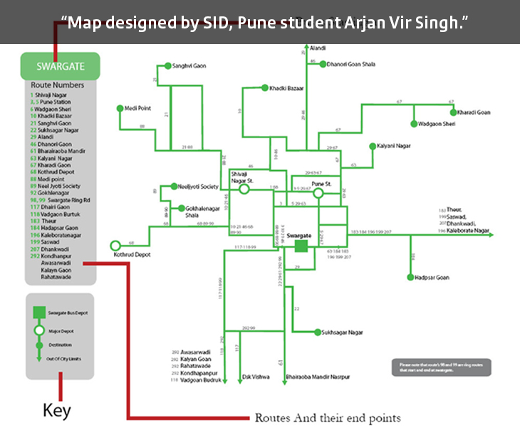 Design of the Pune bus route map by Shweta Kamble